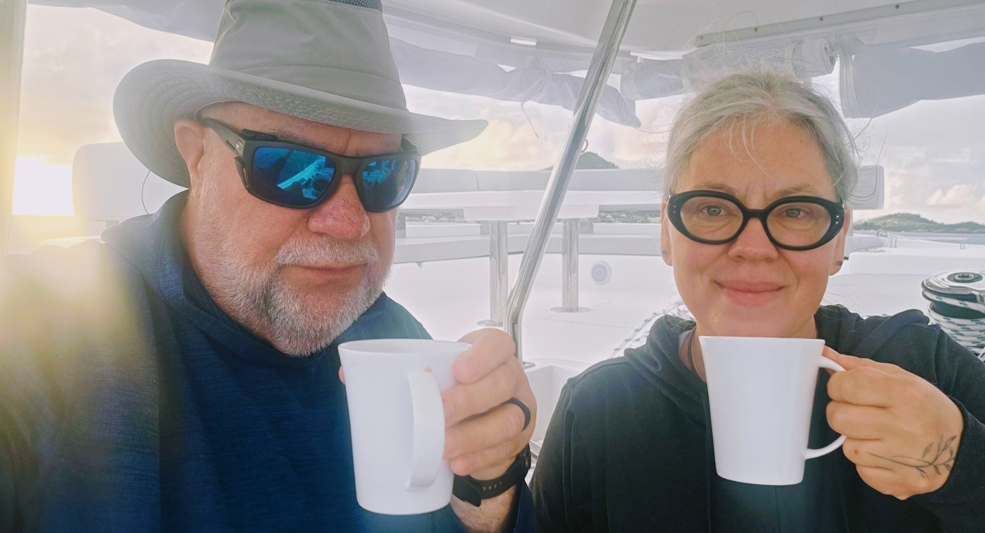 On Tuesday, January 13, our fifth full day of sailing, the morning began around 7:00 AM with our usual coffee. After breakfast Kent drove the dinghy to the Canouan customs office to check out of St. Vincent & the Grenadines and back into Grenada, but learned that the staff was occupied checking in a cruise ship anchored offshore. Rather than wait, we decided to push on to the Union Island office. We weighed anchor and departed by 9:20 AM, reaching Union Island around noon. The process was surprisingly quick, taking only about 30 minutes, and we were on our way again to Petit Saint Vincent.