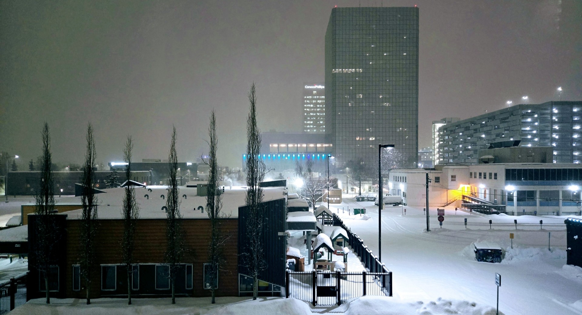 Downtown Anchorage undergoes an overnight makeover. Since the race takes place on city streets, the city hauls in hundreds of truckloads of snow (often stockpiled from earlier in the winter) the night before. By Saturday morning, 4th Avenue is paved with several inches of packed snow specifically for the dog teams.